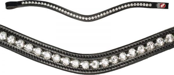 Mit seinem eleganten und geschwungenen Design wertet der Stirnriemen jeden Zaum optisch auf und sorgt dafür, dass Ihr Pferd auch bei Wettkämpfen gut aussieht. Der glamouröse Look ist ideal für Pferdeliebhaber, die Stil und Tradition verbinden möchten.